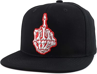 Trendy Apparel Shop Skeleton Middle Finger Embroidered Flatbill Snapback Cap